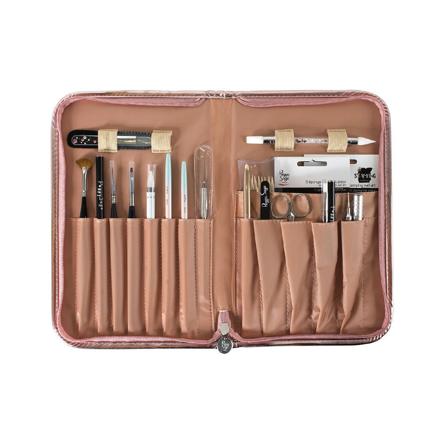 La trousse Rose gold est spécialement conçu pour ranger ses pinceaux de maquillage, accessoires et autres produits dans les compartiments prévus à cet effet. Elle permet d'organiser son matériel de manière ordonnée et le transporter en toute sécurité durant vos déplacements.