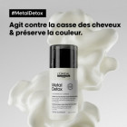 La crème haute protection sans rinçage Metal Detox de L'Oréal Professionnel Paris permet d'éliminer les métaux présents dans les cheveux responsables de la casse grâce à sa formulation enrichie en Glicoamine. En effet, du métal se trouve dans l'eau qui pénètre à l'intérieur de votre fibre capillaire lors du lavage et crée un risque important de dommages.&nbsp.