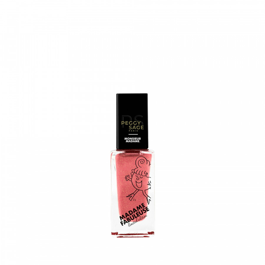| Le + produit | Le vernis à ongles Madame Fabuleuse de la collection Monsieur Madame par Peggy Sage offre un fini corail pailleté éclatant. Grâce à son séchage rapide à l'air libre, sa tenue optimale et sa brillance intense, il s'associe à merveille au vernis enfant Madame Pourquoi pour une manucure complice et lumineuse. |