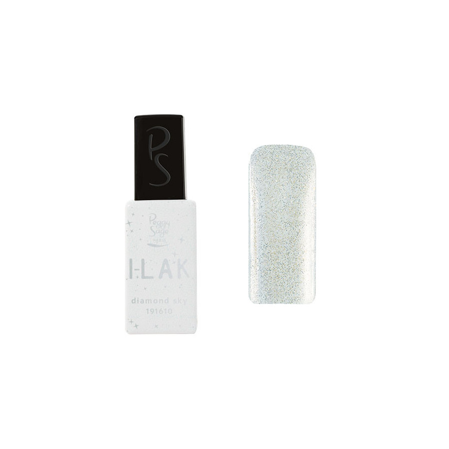 | Le + produit | Pas besoin de modelage ni de limage avec le vernis semi-permanent I-LAK Diamond Sky. Pose ultra-facile tel un vernis, tenue longue durée et facilité de dépose au rendez-vous. Couleur blanc pailleté. |