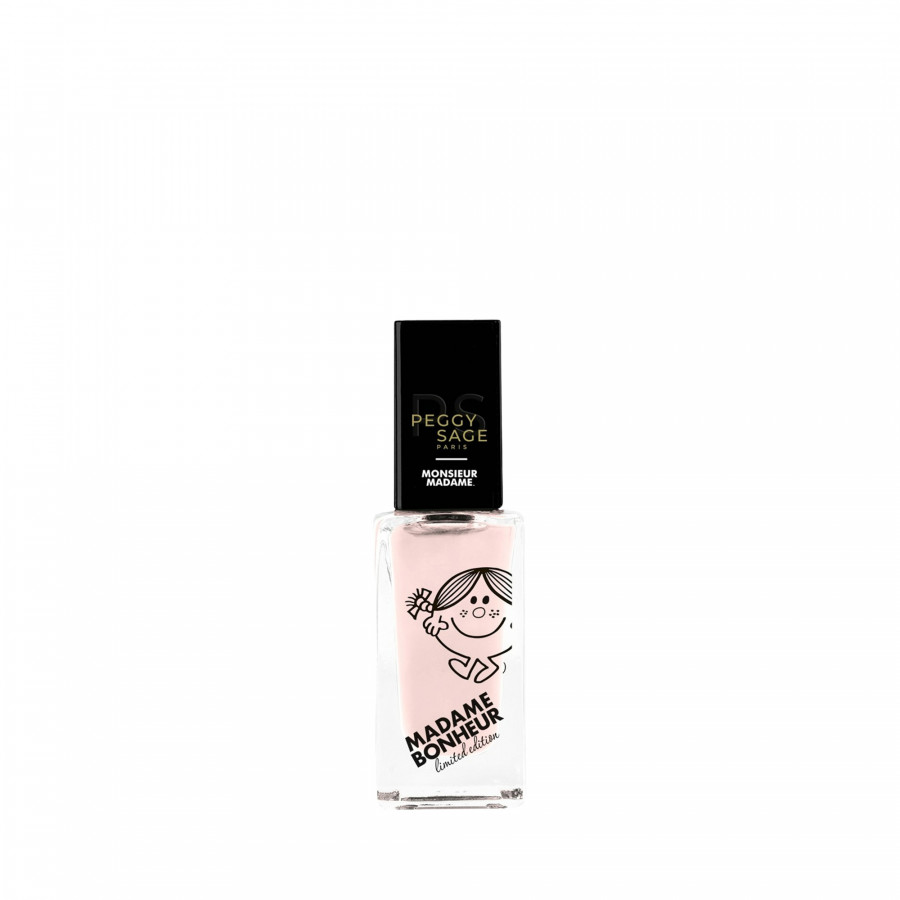 Sa texture fluide permet une application homogène en un clin d'?il. Le vernis Madame Bonheur s'intègre facilement à toutes les routines beauté et complète parfaitement une manucure minimaliste ou sophistiquée. Il se marie à merveille avec des top coats Peggy Sage, pour varier les styles selon les envies.
