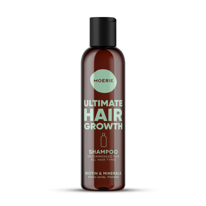 Le Shampoing de croissance nourrissant biotine et minéraux de Moérie est composé à 92% d'ingrédients d'origine naturelle. Il est sans parabènes, sulfates, silicones, OGM et gluten, et il est certifié végane et sans cruauté. De plus, le shampoing bénéficie d'un arôme naturel subtil, composé d'un complexe d'huiles essentielles de lavande, pamplemousse, romarin et menthe poivrée.