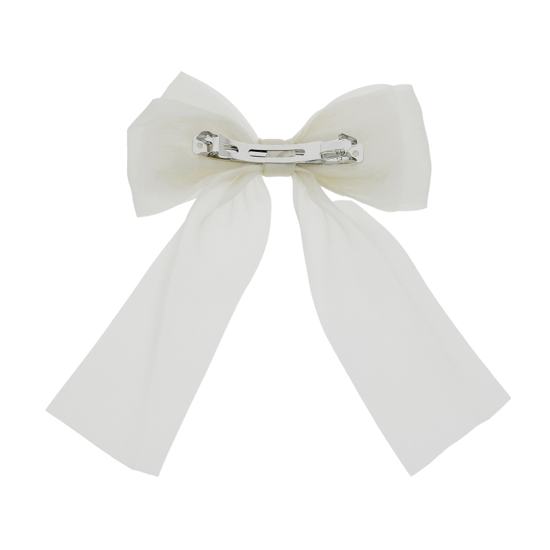 Le n?ud est soigneusement noué au centre pour un rendu naturel et structuré. La barrette métallique au dos permet une ouverture fluide et une fermeture sécurisée, sans tirer sur la fibre capillaire.