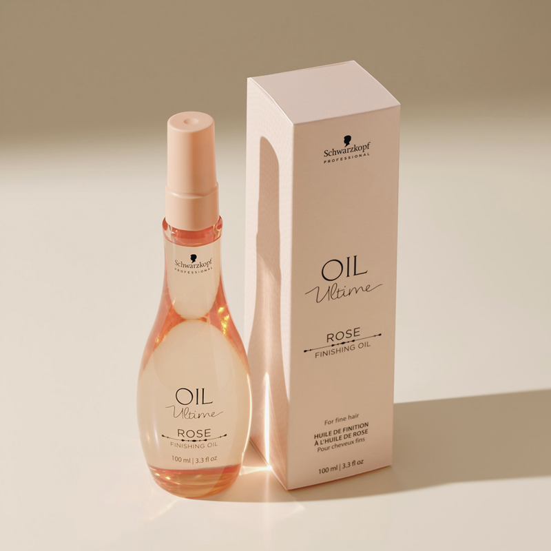 L'huile de finition à la Rose de la gamme Oil Ultime de Schwarzkopf Professional a été spécialement développée pour les cheveux fins à normaux et les cuirs chevelus stressés. Sa formule végane associe des huiles précieuses, purifiées à 100% d'origine naturelle, telles que l'huile de fruit de rose canina et de fleur de rose damascena, connues pour leurs vertus apaisantes et hydratantes.