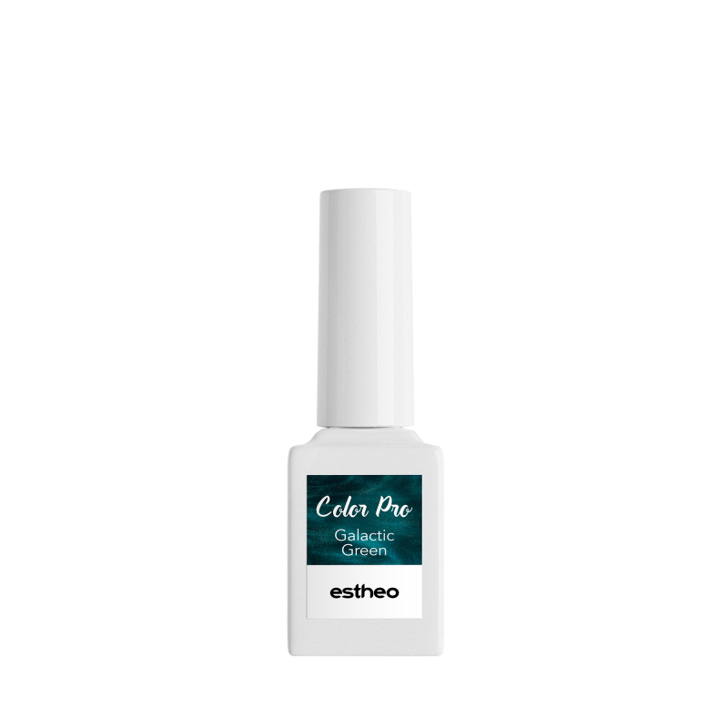 Vert pailleté profond, inspiré des aurores boréales, original et audacieux.