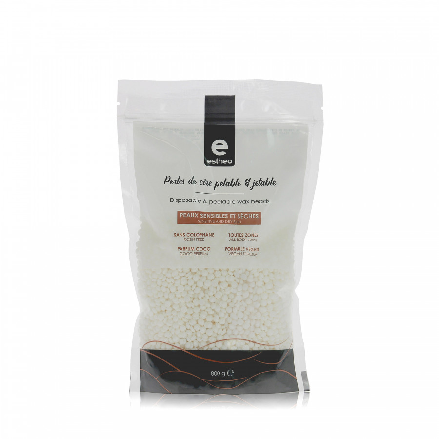 | Le + produit | Les Perles de cire pelable et jetable de Estheo au parfum de Coco possèdent une formule vegan sans colophane, idéales pour les peaux sensibles et sèches. Leur texture crémeuse et leur application sans bande assurent une épilation efficace, même sur les poils courts. |