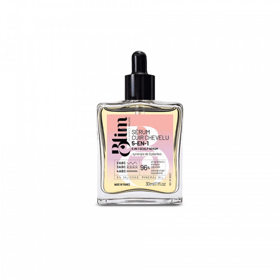 | Le + produit | Le Sérum cuir chevelu Blim by Patrice Mulato est un soin 5-en-1 qui purifie, hydrate, protège, fortifie et stimule la croissance. Formulé à 96?% d'ingrédients d'origine naturelle, sans silicone ni huile minérale, il améliore la microcirculation et maintient un cuir chevelu sain. |