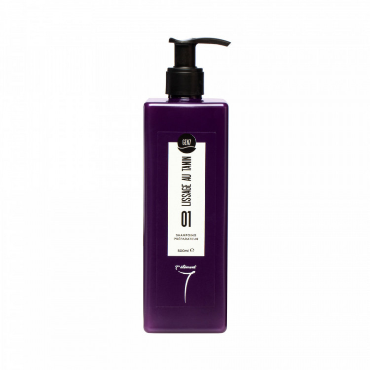 | Le + produit | Le shampoing préparateur de Gen7 nettoie la chevelure et la prépare au traitement du lissage au tanin. |