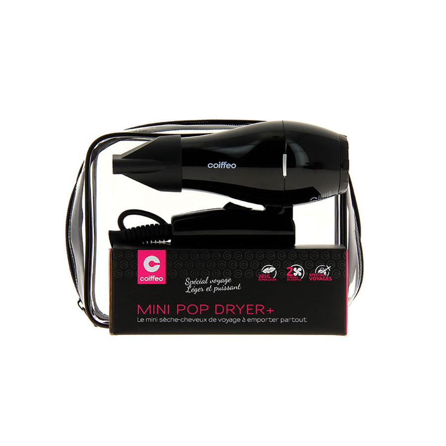 Le mini sèche-cheveux Pop Dryer+ noir est le compagnon idéal de voyage. En effet, il se transporte facilement grâce à son manche pliable et peut donc se glisser dans toutes les valises.