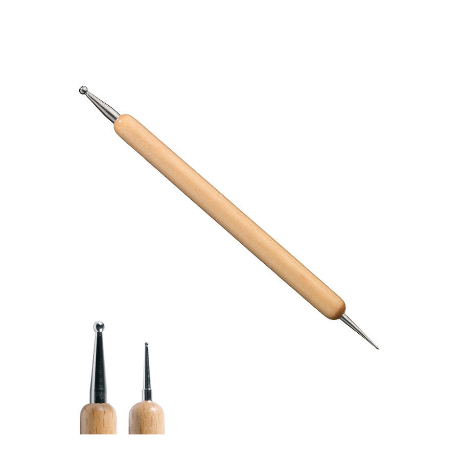 Outil à marbrer avec tige en bois 10.5cm pour une bonne prise en main et 2 pointes en métal de 2 tailles différentes pour permettre de varier les décors.
