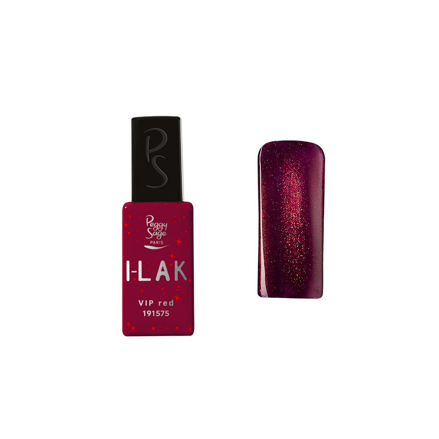 Le + produit | Pas besoin de modelage ni de limage avec le vernis semi-permanent I-LAK VIP Red. Pose ultra-facile tel un vernis, tenue longue durée et facilité de dépose au rendez-vous. Couleur rouge foncé pailleté. |