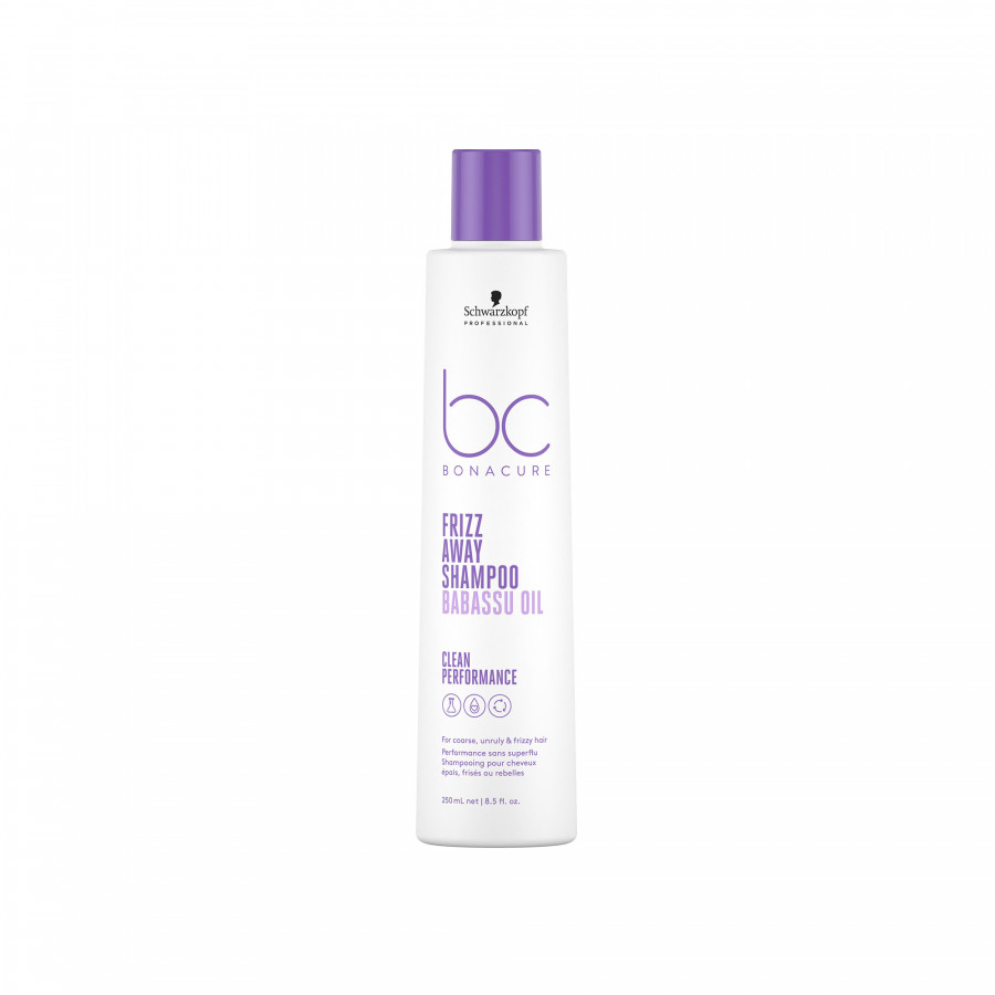 Le shampooing anti-frisottis Frizz Away 250ml de la gamme BC Bonacure de Schwarzkopf est spécialement conçu pour les cheveux rebelles, épais, secs ou frisés.