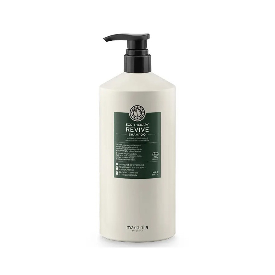 | Le + produit | Le shampooing Maria Nila de la gamme Eco Therapy revive et sa technologie Micellaire enveloppe les particules de produits de coiffage et autres impuretés, pour les éliminer au rinçage. Une formule naturelle. Développée sans silicone ni sulfate, éco-certifiée et végan. Flacon de 1050ml fabriqué à partir des déchets récupérés des océans. |
