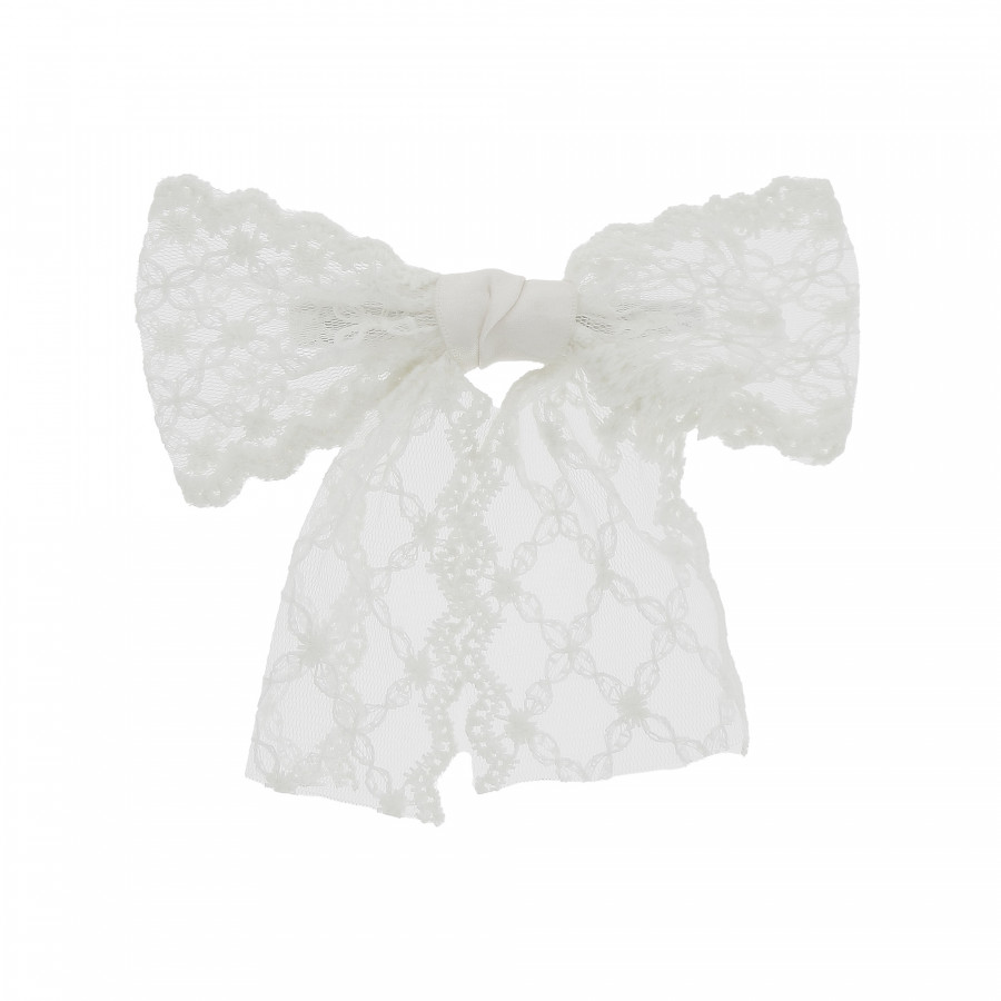 | Le + produit | La barrette de la collection Printemps-Été 2025 signée Bleu Libellule habille vos cheveux d'un n?ud blanc effet dentelle pour une touche romantique et élégante. |