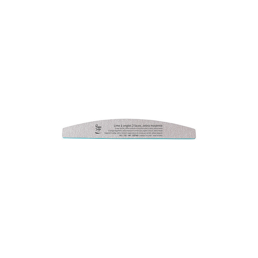 Lime a ongles demi-lune 180/180 zebra medium. Cette lime offre une plus grande surface abrasive et une meilleure prise en main pour un plus grand confort.