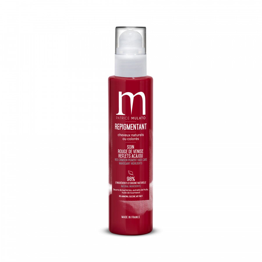 Le soin repigmentant Rouge de Venise apporte des reflets rouges aux cheveux naturels et colorés.
