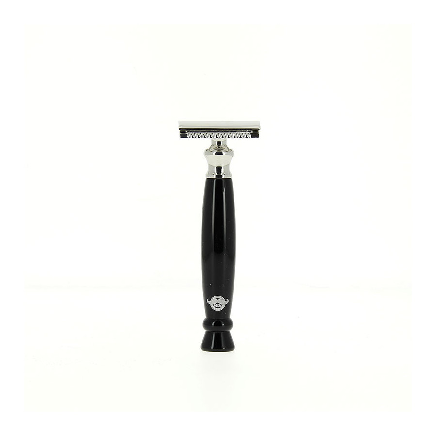 Véritable objet de collection le rasoir de sûreté noir deviendra rapidement le meilleur outil pour les adeptes du rasage traditionnel. Ces finitions en acier inoxydables et zinc lui permettent dêtre plus résistant à leau et ainsi de rallonger sa durée de vie. Le rasoir noir à fermeture papillon pourra facilement se poser sur votre meuble de salle de bain grâce à sa base plate.